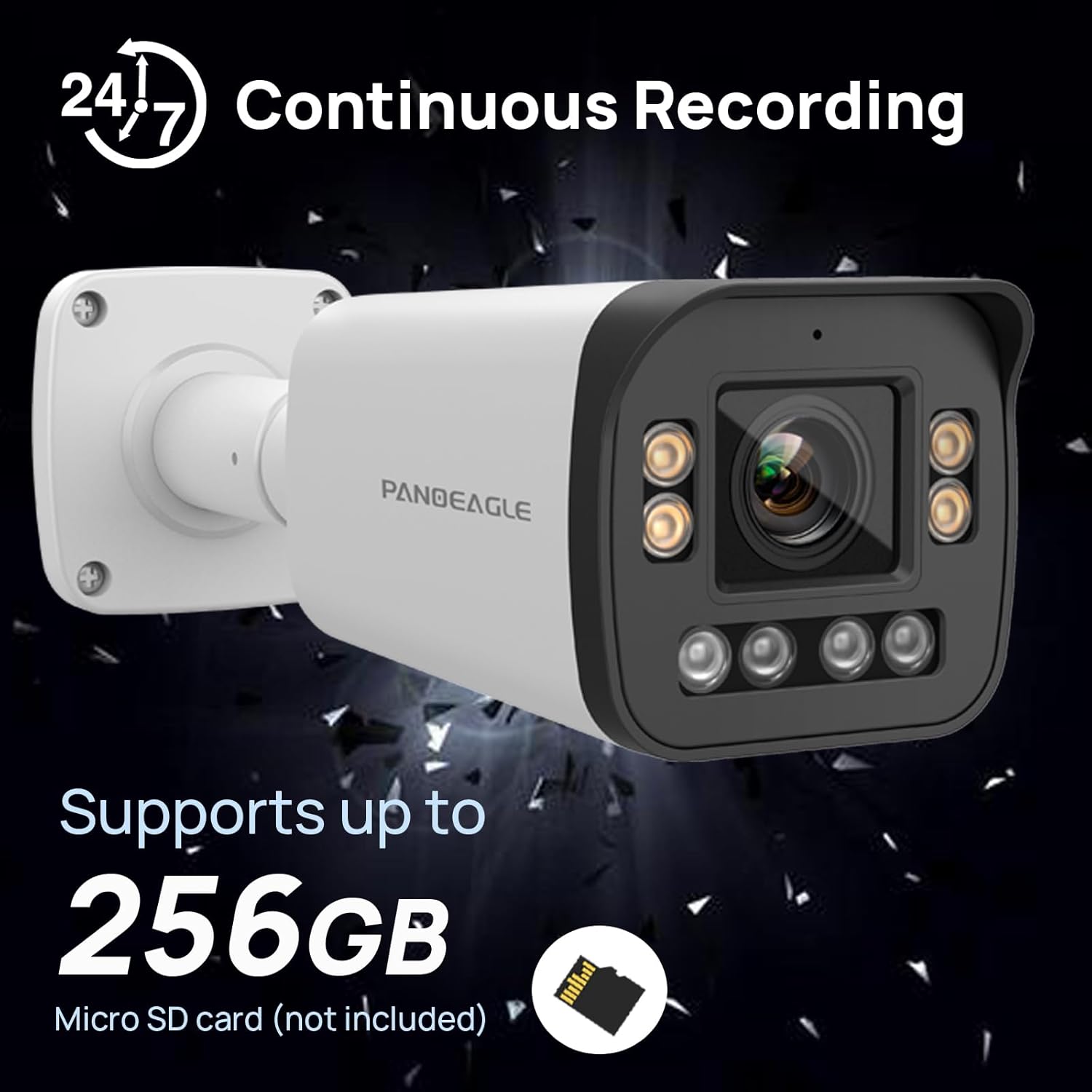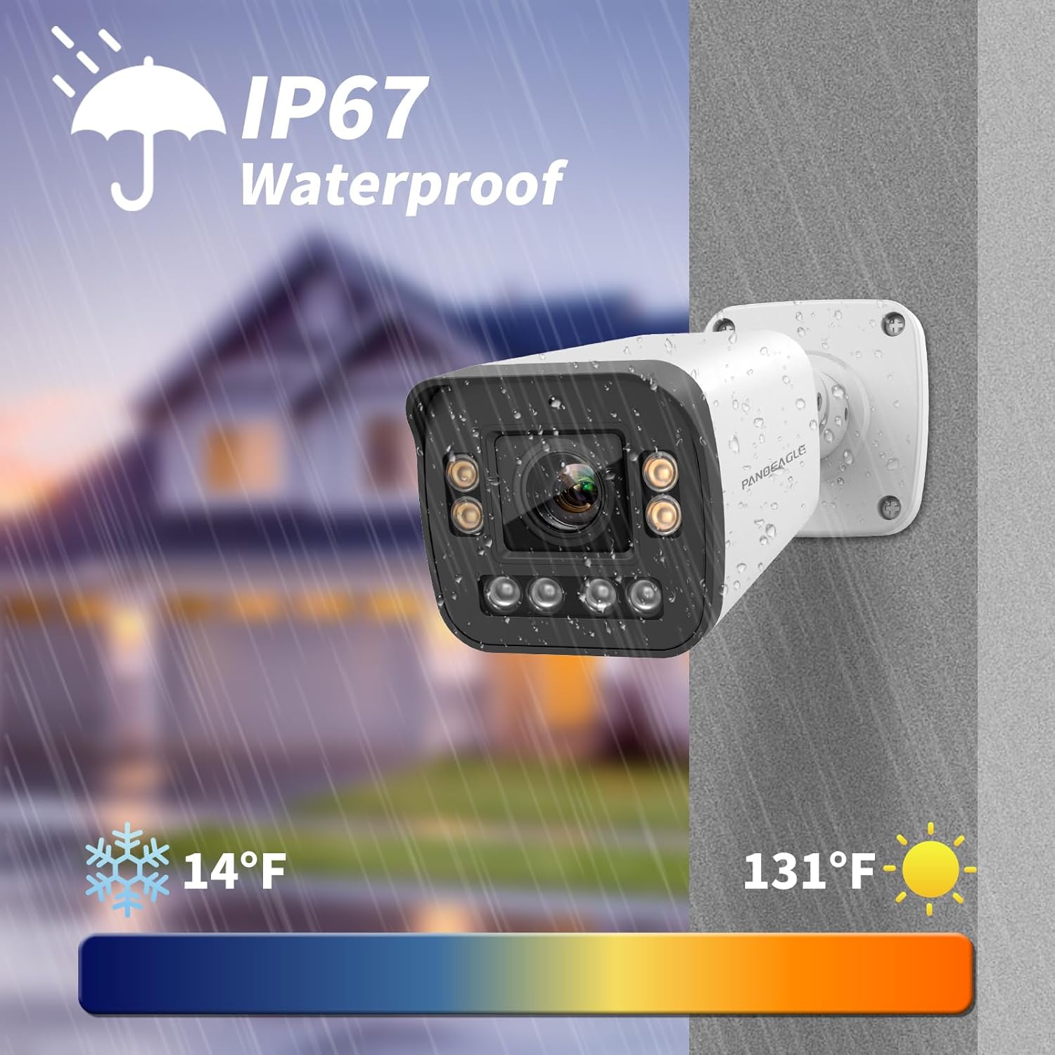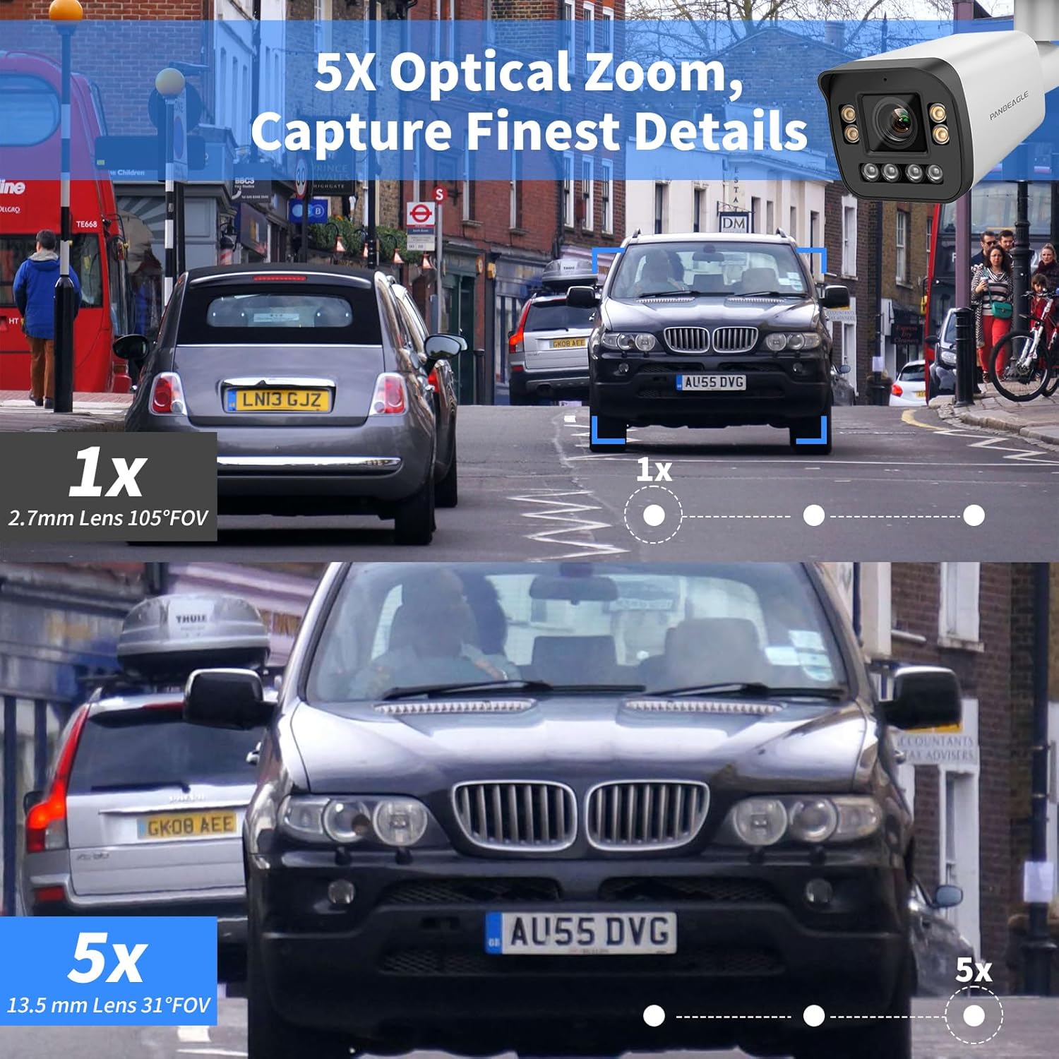 1/2.8” Progressive Scan CMOS 2592 x 1944@30fps HD 2.7 to 13.5mm varifocal lens Color: 0.01 Lux @(F1.0, AGC ON),0 Lux with Light H.265+,H.265,H.264 Support PoE BLC/3D DNR/HLC/WDR Built-in Mic and speaker IP66